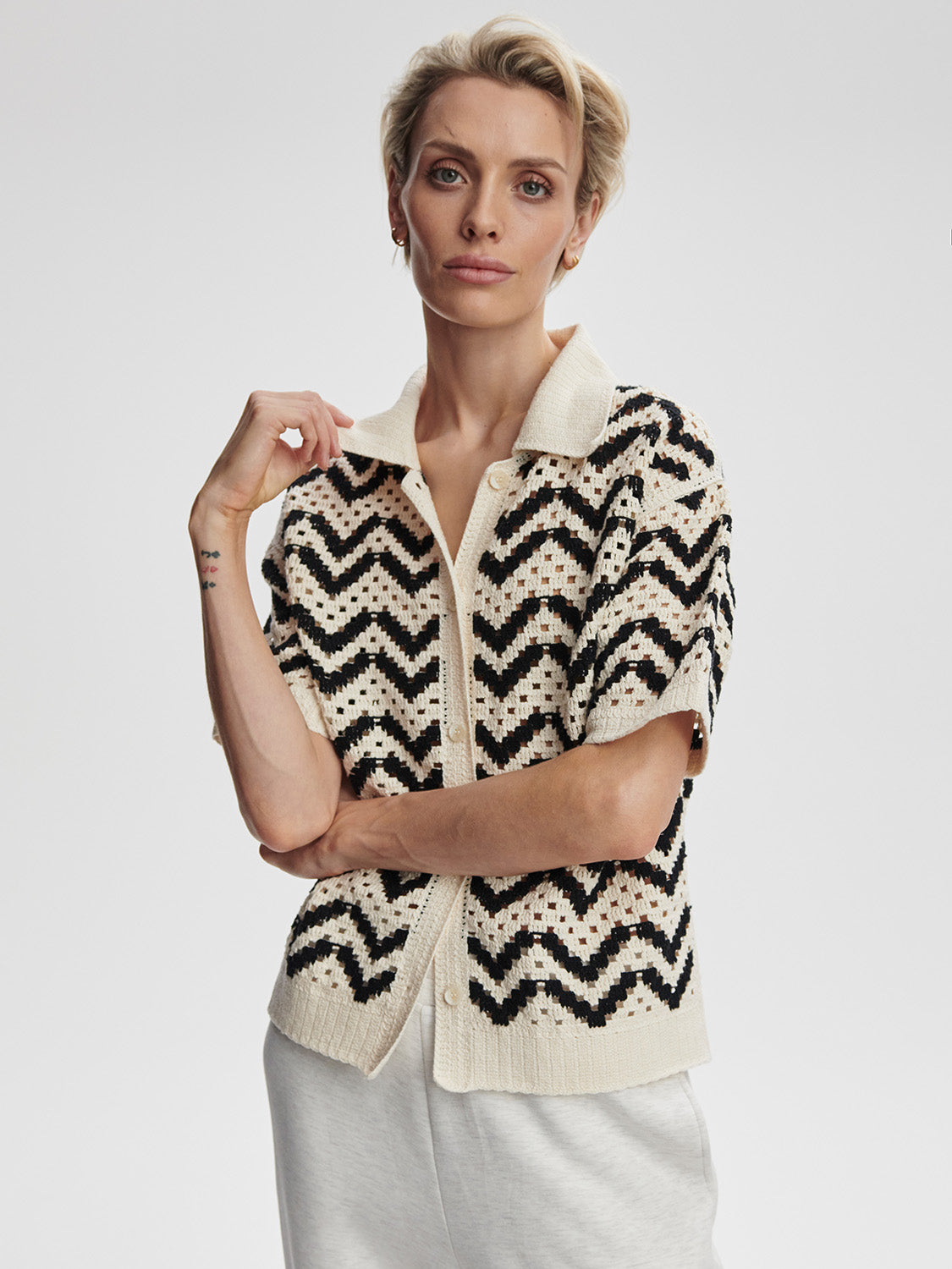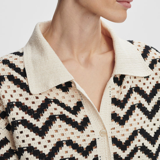 Elevate your everyday wardrobe with the effortlessly chic Anais Crochet Polo Top in Birch from Varley, this standout piece is perfect for transitional layering and warm-weather style. Crafted in a beautifully textured open crochet knit, the Anais Top features a relaxed silhouette, short sleeves, and a soft pointed collar — offering a nod to retro polo styling with a contemporary twist. The button through style soft Birch hue adds a refined neutral tone that pairs effortlessly with denim, tailored trousers, or relaxed shorts.