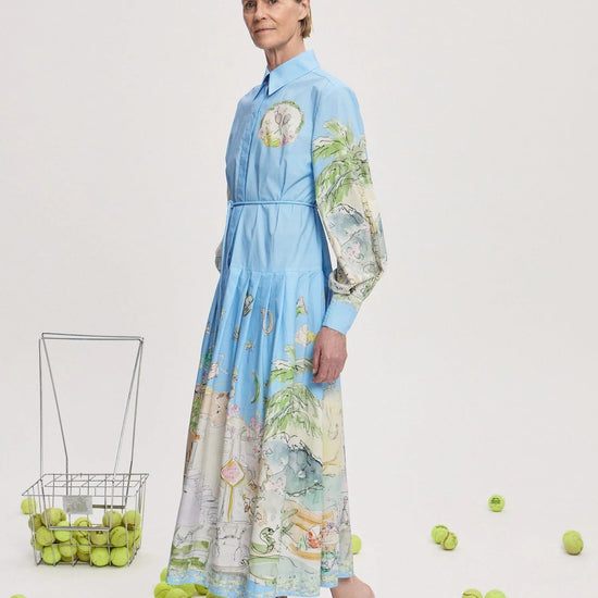 Effortlessly chic and beautifully crafted, the Anouk Shirtdress in Sky by ALÉMAIS brings fresh, airy style to your wardrobe. Designed by the renowned Australian label celebrated for its sustainable and artistic approach to fashion, this shirtdress blends timeless tailoring with a soft, serene blue tone inspired by clear skies.