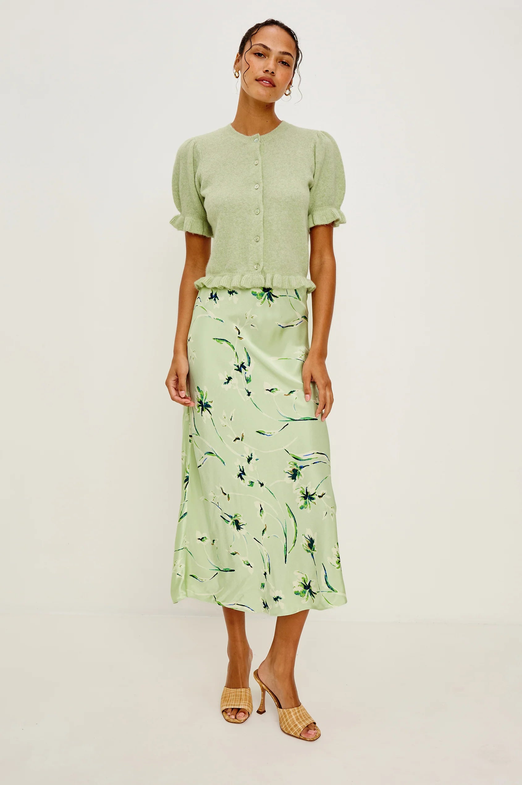 Featuring a mint green background with a delicate floral design, the Anya Slip Skirt brings a fresh yet timeless feel to your wardrobe. Perfect for taking you from day to night, it adds a polished finish to any look.