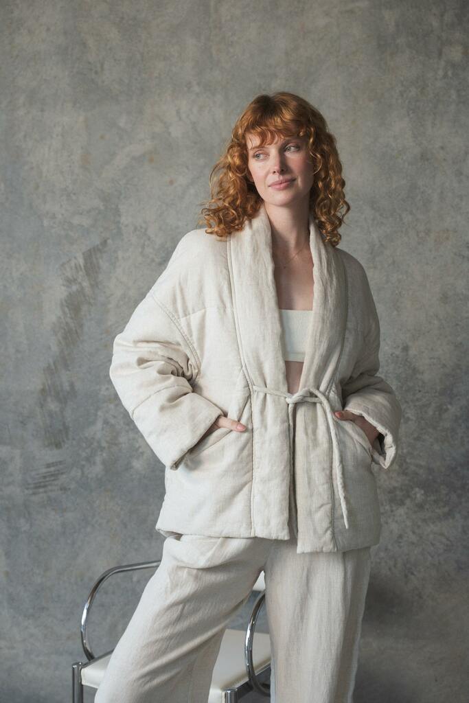 A statement in understated luxury, the Aster Linen Coat Oatmeal from Lilly Pilly is where sculptural design meets effortless wearability. Made from premium European linen, this contemporary take on outerwear features a unique kimono-inspired puffer silhouette - oversized, relaxed, and undeniably cool.