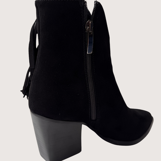 Step out in effortless style with these Ava Suede Boot Black from Donna Lei, designed with a subtle nod to cowboy chic. Crafted from soft premium suede, they feature a side zip for easy wear and a tassel detail down the outside edge for a touch of movement and individuality.
