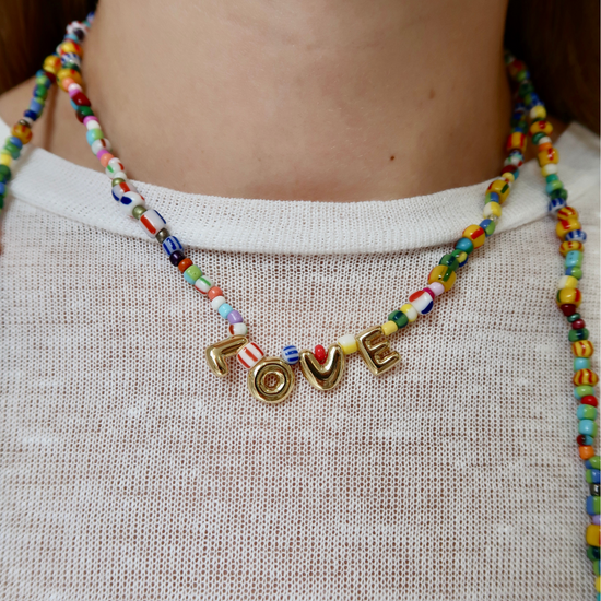 Bring a burst of colour to your summer wardrobe with the Beaded Love Choker from Talis Chains. Strung with multicoloured acrylic beads, this playful piece is full of bright, feel-good energy and finished with gold-tone LOVE charms for a joyful touch.