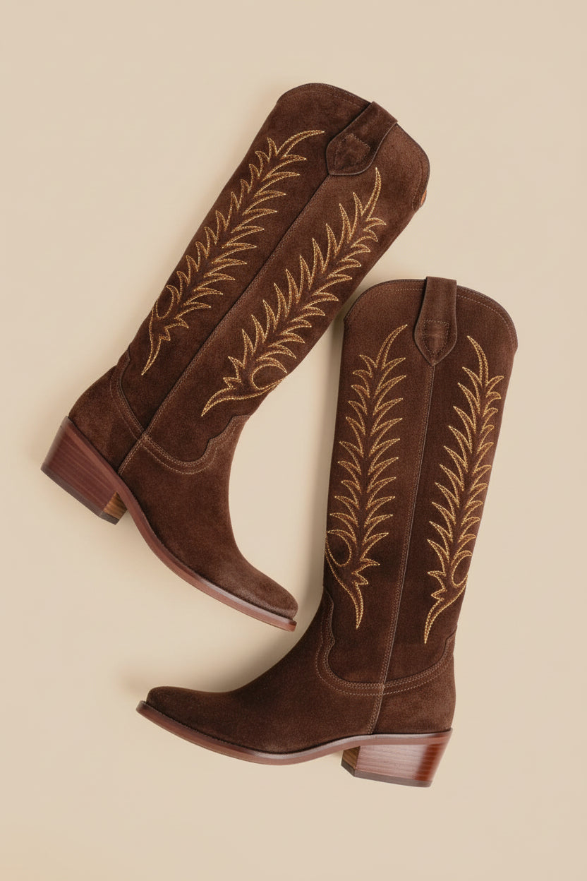 Blanca Suede Embroidered Boot Chocolate