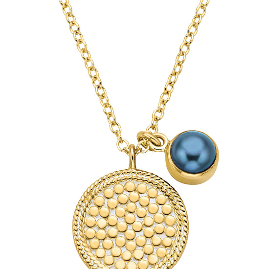 Blue Pearl Dual Disc Pendant Gold - Anna Beck