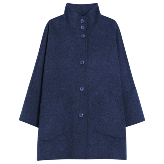 Bold, elegant, and endlessly wearable, the Brunner Coat Navy from iBlues in navy makes a statement with its sculptural silhouette and refined details. Made from a super-soft wool blend, this coat features an oversized, cape-like design that brings both drama and comfort to cool-weather dressing.