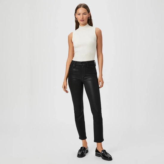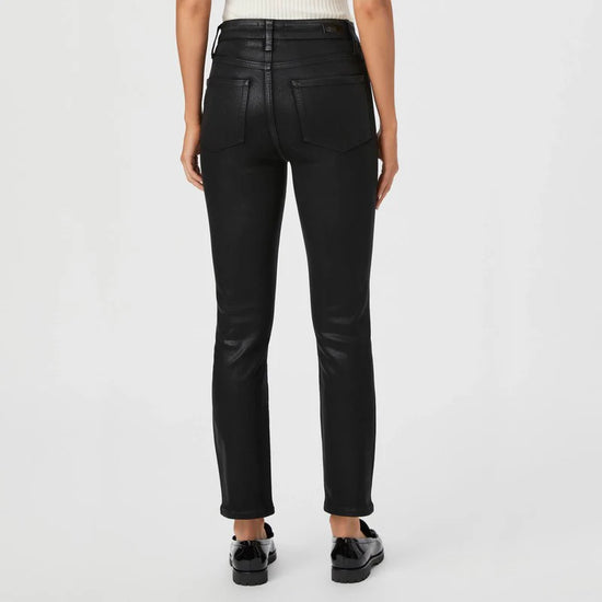 Elevate your wardrobe with the Cindy Jeans Black Fog Luxe Coating from Paige - a modern take on timeless sophistication. Designed with an high rise and a straight-leg silhouette, these luxe trousers come in a striking Black Fog finish that mimics the sleek look of leather without sacrificing comfort.