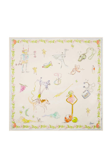 Understated elegance meets artistic design in the Court Silk Scarf in Ivory from ALÉMAIS, the Australian label known for its conscious craftsmanship and expressive prints. Made from 100% pure silk, this luxurious square scarf showcases intricate linework and soft botanical motifs in a refined ivory palette, blending timeless sophistication with modern femininity.