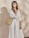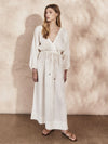The Dana Dress Panna from Mondo Corsini is the epitome of effortless elegance, designed for those who appreciate both style and comfort. Made from pure linen, this dress is lightweight and breathable, making it perfect for warmer days and nights. The romantic blouson sleeves add a soft, feminine touch, while the deep V-neckline creates a flattering silhouette that can be dressed up or down with ease.