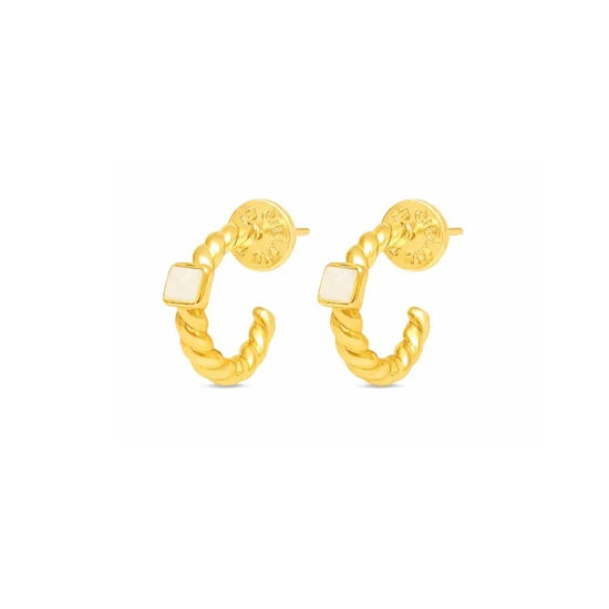 Discover timeless elegance with the Everyday Twist Hoops Labradorite by Talis Chains. These gold-tone twisted hoops feature a prettu labradorite stone that delivers a elegant splash of colour to your jewellery collection. Crafted for versatility, they transition seamlessly from day to evening wear and work beautifully as standalone pieces or layered within your ear stack. The refined design offers understated luxury that complements any style, whether you're dressing casually or for a special occasion. A British-made essential that brings effortless refinement to your everyday look.