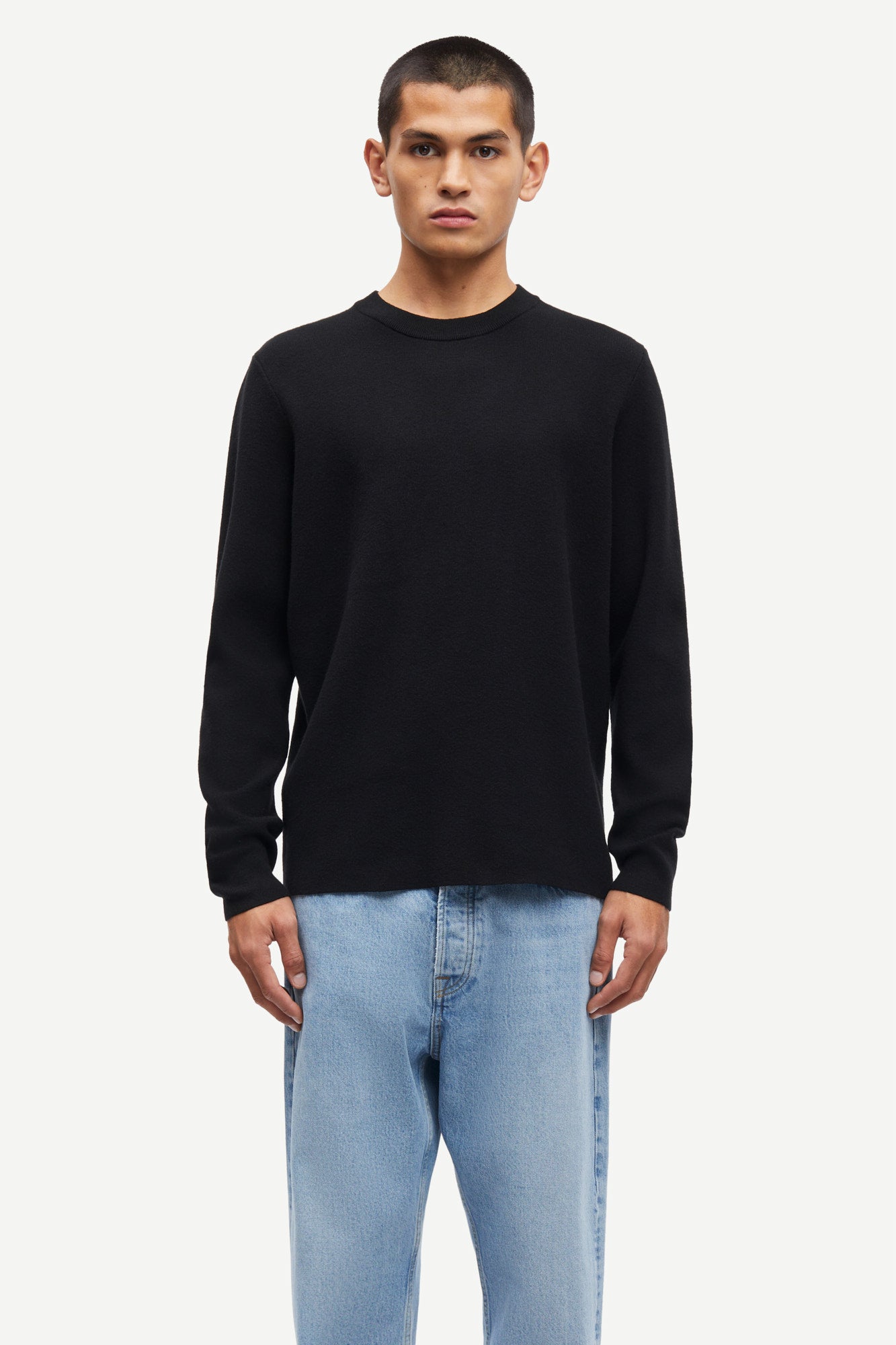 Designed with a compact full needle stitch for a clean, streamlined look, it features a ribbed crew neckline and a straight hem, making it easy to layer or wear on its own. The black colourway keeps it versatile - sharp enough for the office, effortless enough for the weekend.