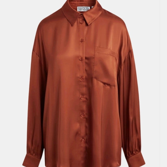 Elevate your everyday wardrobe with the Judith Ruffle Shirt in Etruscan Red by Essentiel Antwerp. This oversized button-front shirt features dropped shoulders for a relaxed, contemporary fit that works beautifully layered or worn solo. Dramatic ruffles cascade along the sleeve seams, creating movement and visual interest with a distinctly feminine flair. The single chest pocket adds practical charm to the timeless tailoring.