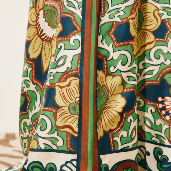 Liana Silk Palazzo Pant Multi by Alemais combines timeless elegance with contemporary comfort. Crafted from 100% pure silk, these wide-leg trousers feature a captivating vintage-inspired floral print in rich multi-tones. The elasticated waist ensures a relaxed yet refined fit, while functional side pockets add practical appeal. Perfect for effortless styling from day to evening, these palazzo pants deliver luxury fabric and statement design in one versatile piece and are a perfect alternative to a dress.