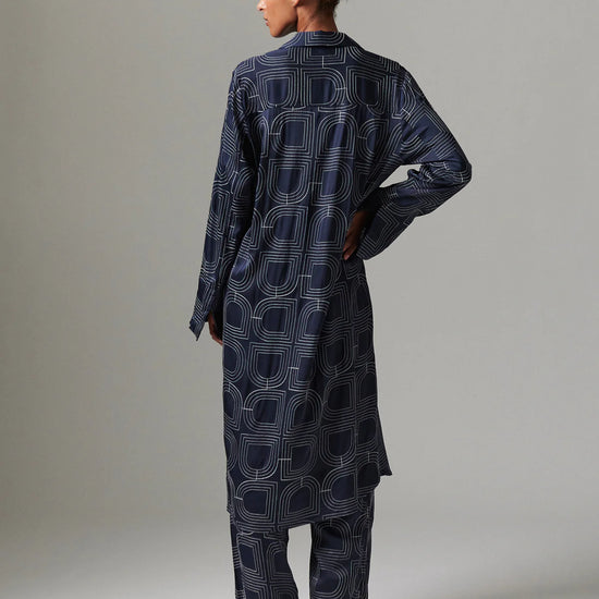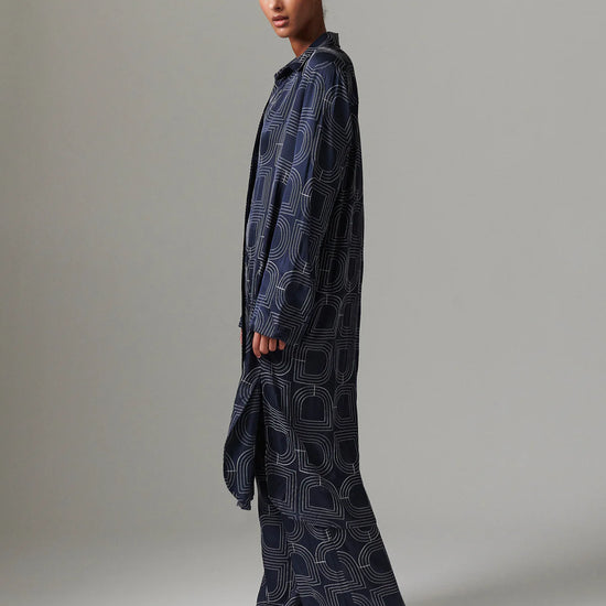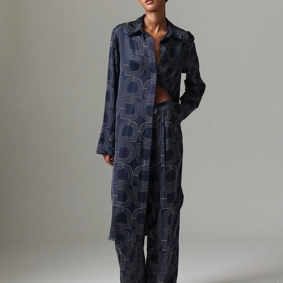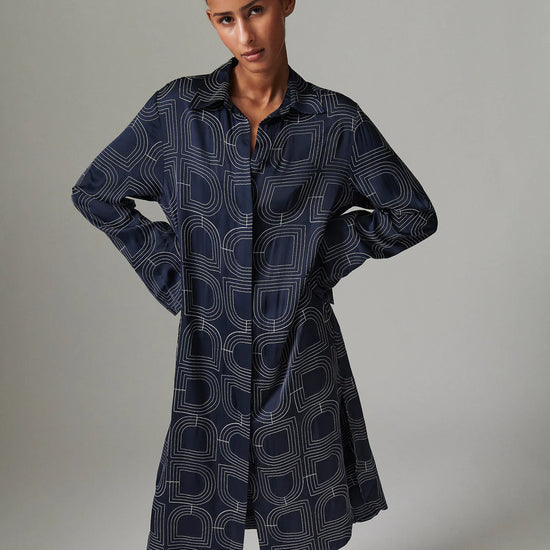 Sleek, modern, and effortlessly refined, the Lissy Dress in Dark Sapphire by Day Birger et Mikkelsen is a contemporary take on the classic shirtdress. Made in a deep navy fabric with textured white stitching in an artful, unusual design, this piece strikes the perfect balance between minimalism and statement style.