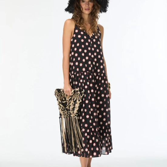 Cut in a relaxed, sleeveless silhouette, it features a flattering button-through front and softly gathered tiers that create beautiful movement with every step. Lightweight and easy to wear, it’s the kind of piece that works just as well for sunny days as it does layered into cooler evenings.