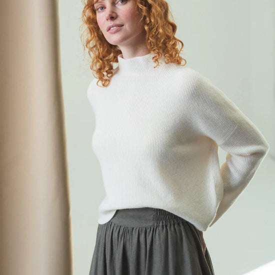 A timeless layer of quiet luxury, the Lumi Cashmere Knit Ivory from Lilly Pilly is crafted from a beautifully soft cashmere and wool blend that offers lightweight warmth, breathability, and an effortlessly elegant drape.