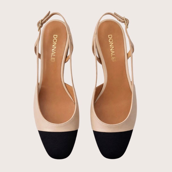 Discover timeless sophistication with the Margo Slingback Oyster/Black by Donna Lei, where Italian design meets everyday wearability. This refined slingback features a supple leather lining, distinctive cross-grain ribbon detailing at the toe, and an adjustable gold-toned buckle for a secure, customised fit. Built on a durable leather sole, it seamlessly bridges the gap between polished professional settings and relaxed weekend wear. The neutral Oyster and Black colourway pairs effortlessly with any outfit, from tailored trousers to casual denim. A versatile investment piece that elevates your footwear collection with understated elegance and lasting quality.