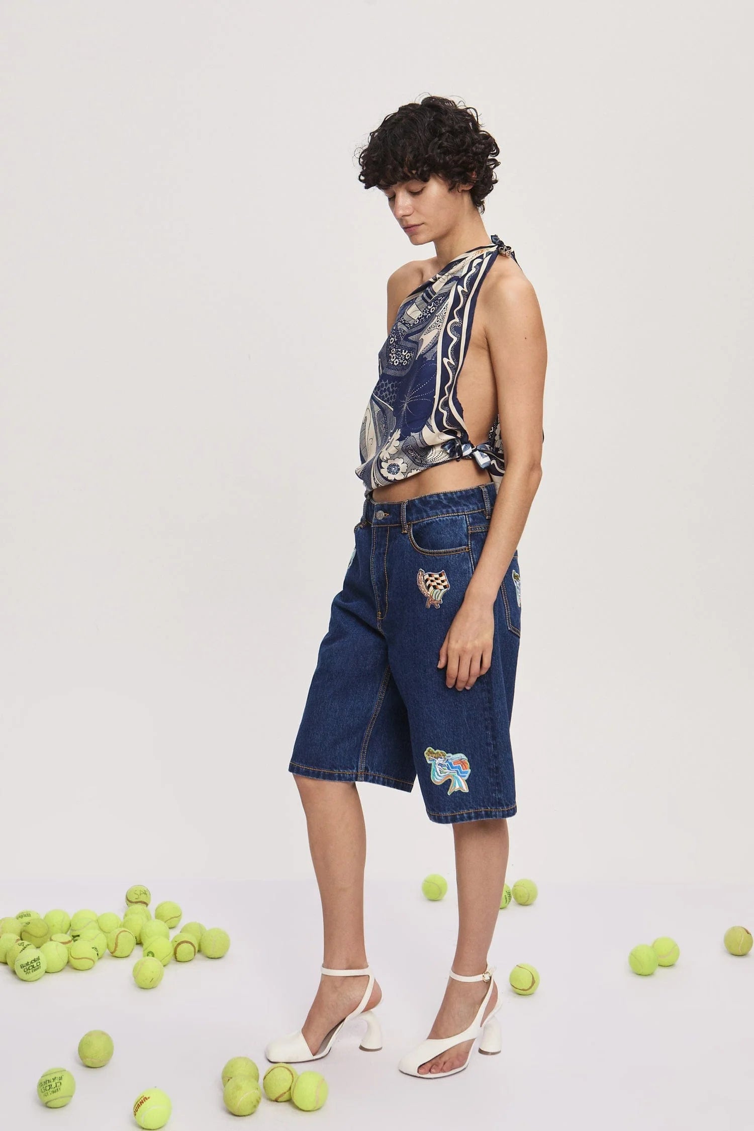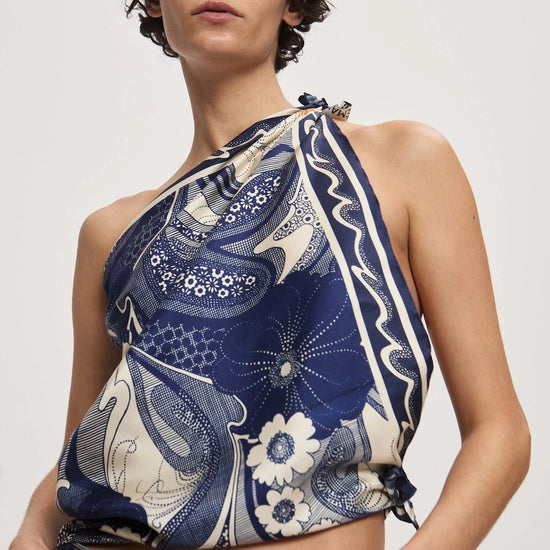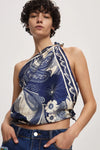 Made from 100% luxurious silk, the Mickey Scarf features a vibrant, illustrative design in striking shades of blue, infused with the brand’s signature whimsy and attention to detail. Lightweight and versatile, this square scarf can be styled around the neck, as a headscarf, tied to a handbag, or worn as a statement hair accessory.