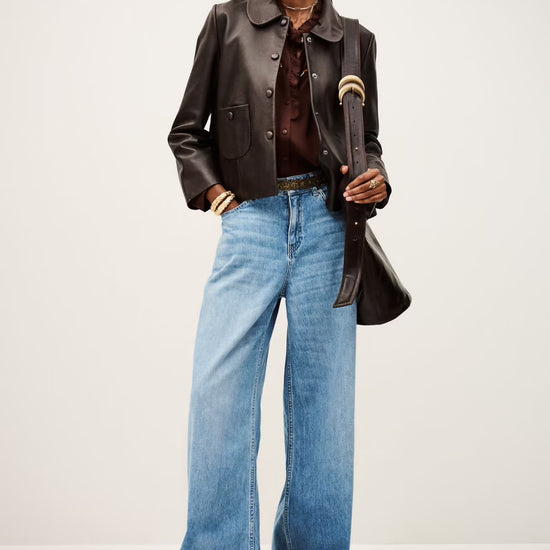 The adorable Milo Leather Jacket Marron from Parisian brand ba&sh returns in a stunning shade of marron — a rich, beautiful maroon-brown that adds warmth and sophistication to any outfit. A Sass & Edge favourite, this cropped leather jacket is both elegant and effortlessly cool.