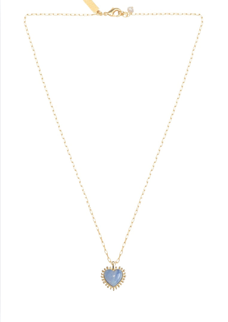Mini Heart Pendant Necklace Blue Aventurine