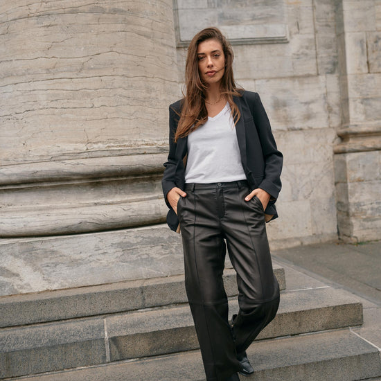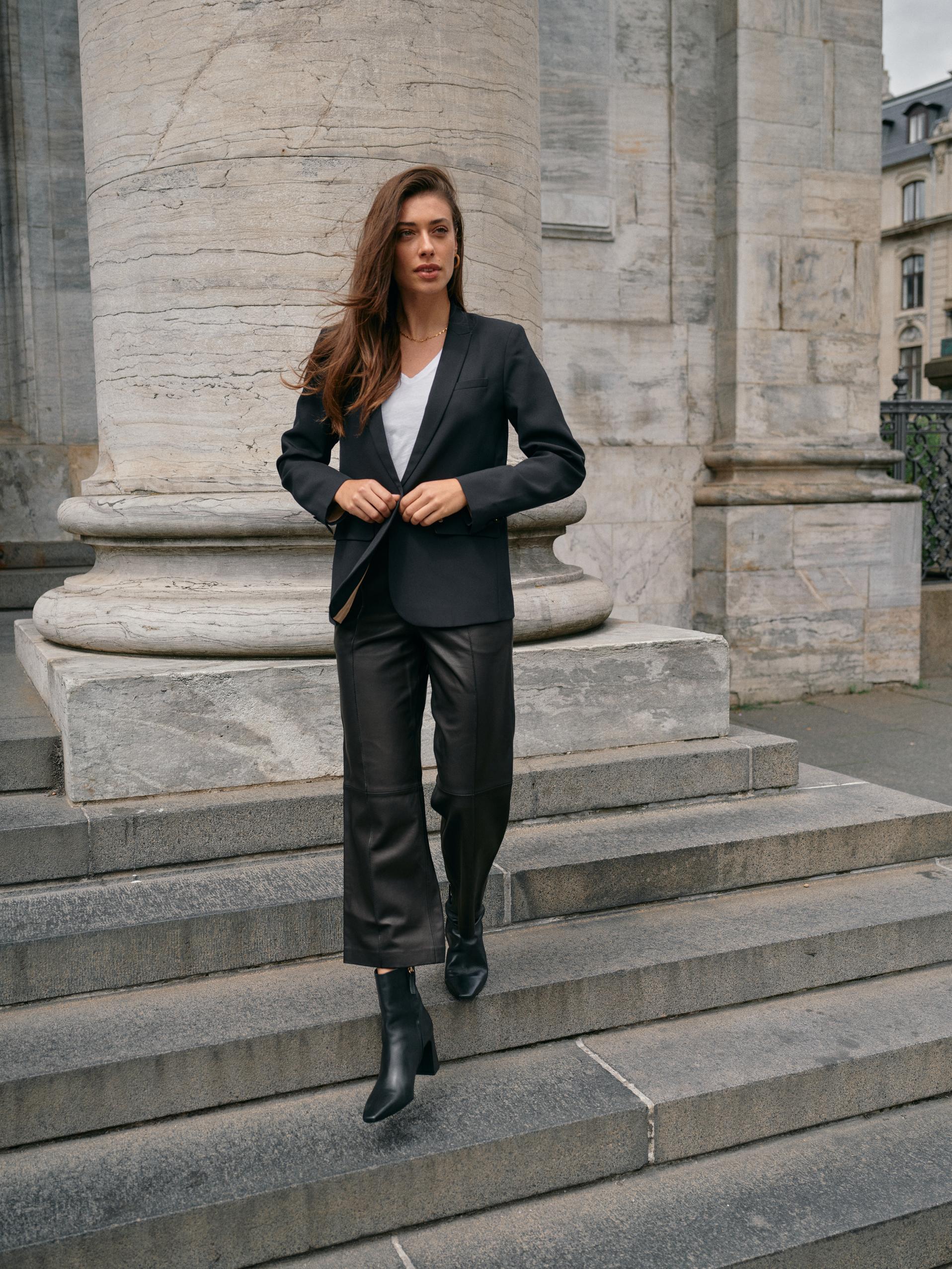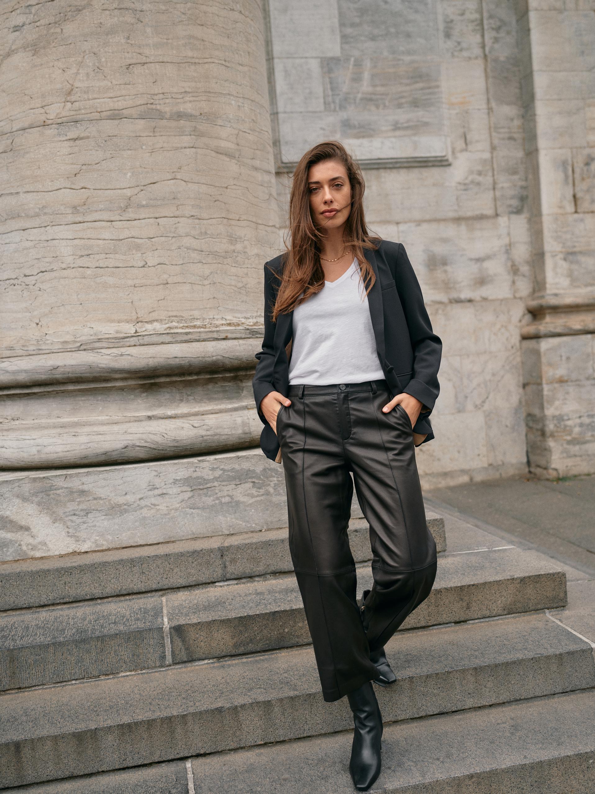 Wear yours with a tucked-in silk shirt to soften the look, or pair with a fitted knit and ankle boots for effortlessly cool, city-ready style.