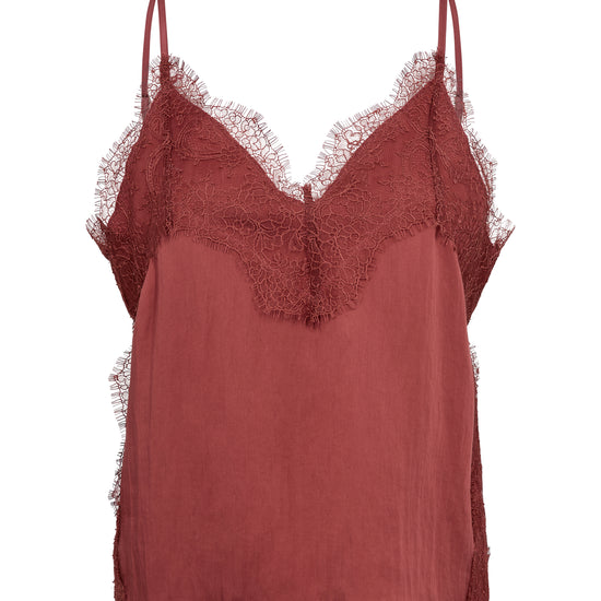 Elevate your everyday style with the MMRiela Annie Top in rich red. This sophisticated camisole from Mos Mosh combines premium lyocell fabric with delicate contrast lace detailing at the neckline, back, and sides for understated elegance. Adjustable spaghetti straps and a clean straight hem deliver a flattering, comfortable silhouette that works from morning to evening. Layer it over your favourite denim with a tailored blazer for polished daywear, or wear it solo under a knit for added dimension and texture. The soft, breathable lyocell blend makes it perfect for transitional dressing—versatile enough for casual weekends yet refined enough for dinner plans. A wardrobe essential that effortlessly bridges casual and sophisticated.
