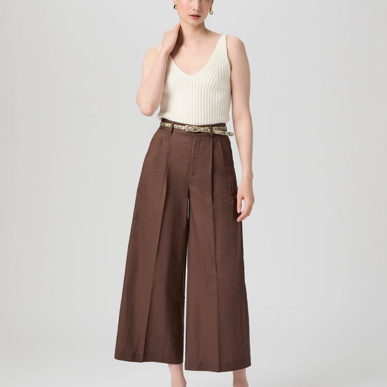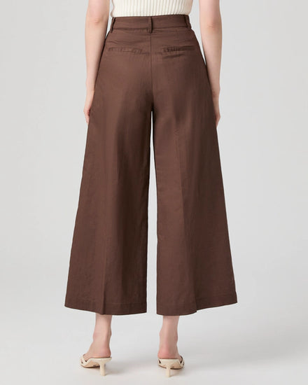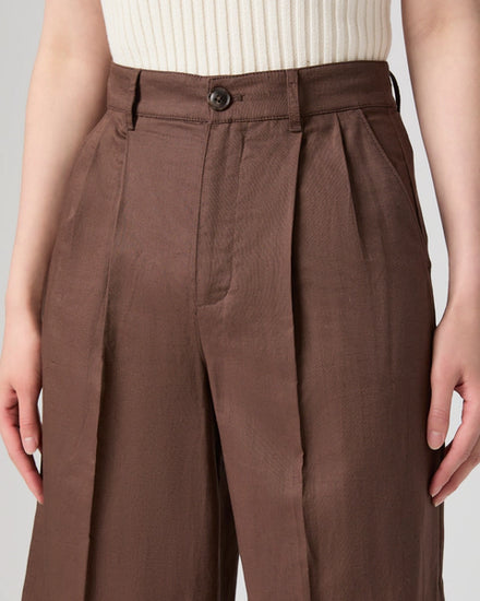 Timeless tailoring meets modern sophistication in the Negroni Trousers from Paige. Crafted in a rich tamarind brown, these high-rise, wide-leg ankle-length pants are cut from a lightweight and breathable cotton-linen blend - perfect for warmer days or layering through seasons. Thoughtful details like the double front pleats, horn buttons, and welt back pockets elevate this classic silhouette, while the 30” leg opening adds a relaxed, tailored flow.