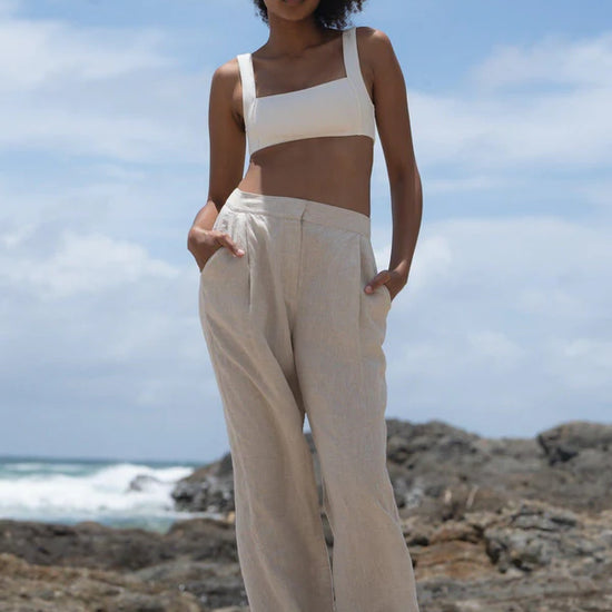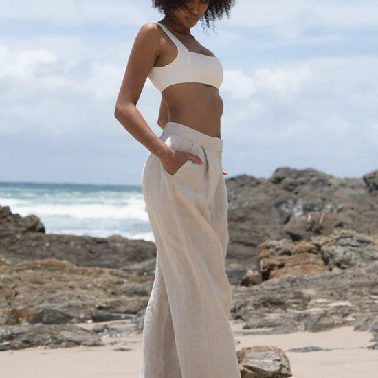 The Oli Linen Trouser Oatmeal from Australian brand Lilly Pilly is the ultimate blend of relaxed elegance and everyday comfort. Made from 100% organic linen, these wide leg trousers offer a luxurious yet laid-back fit that’s perfect for any season. The trousers feature a straight wide leg silhouette with side pockets, ensuring both style and practicality.