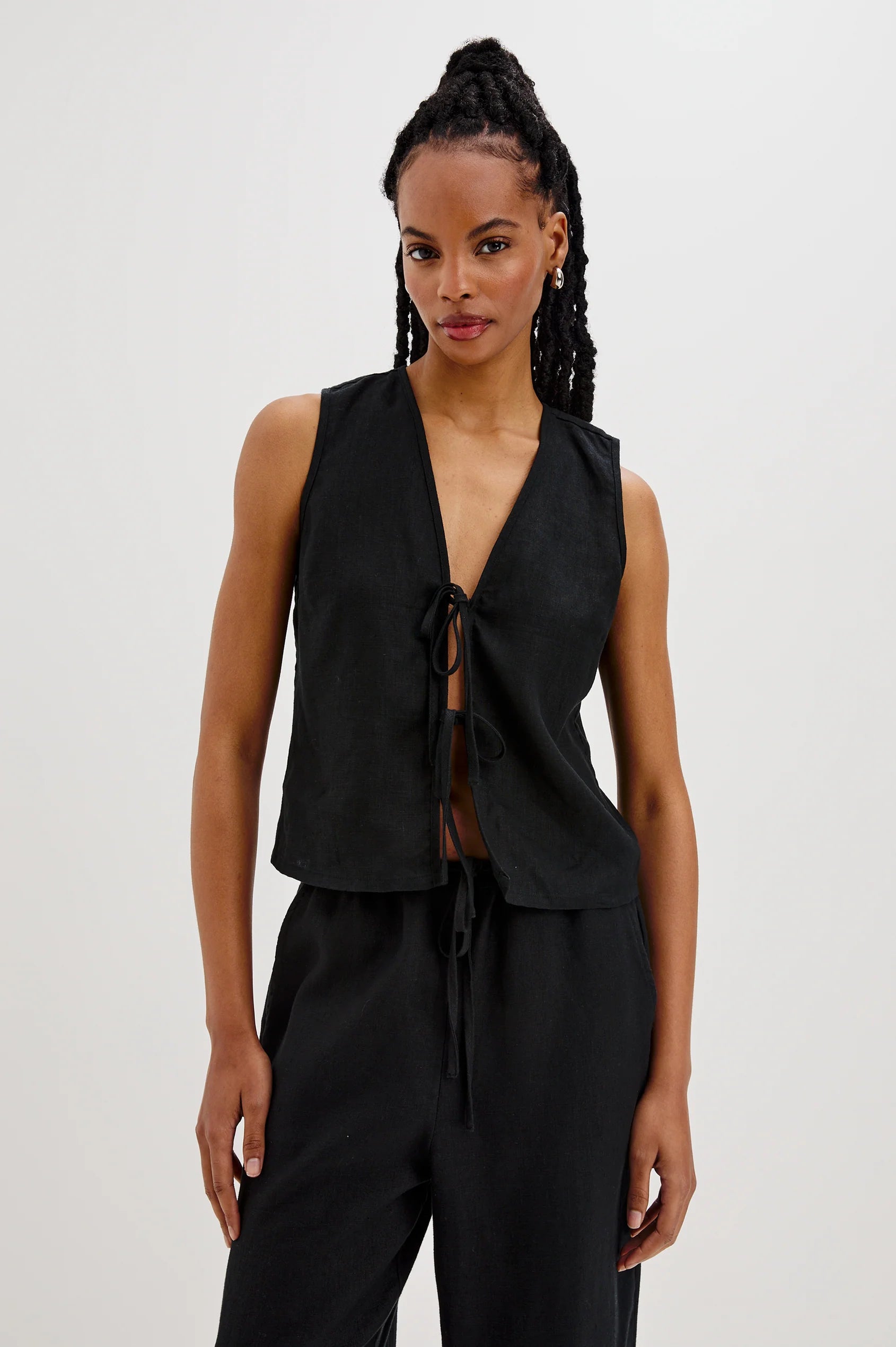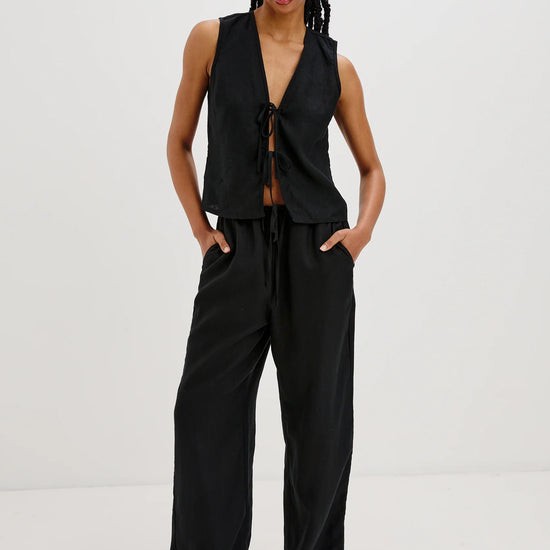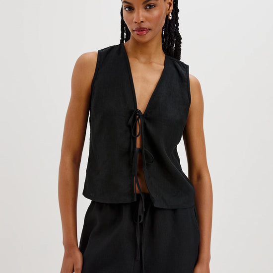 Chic, minimal, and effortlessly versatile, the Oregon Top Black from Rails is a warm-weather staple with timeless appeal. Made from 100% luxe heavy linen, this sleeveless, slightly cropped top features an airy silhouette and two eye-catching front tie closures for a playful, feminine touch.