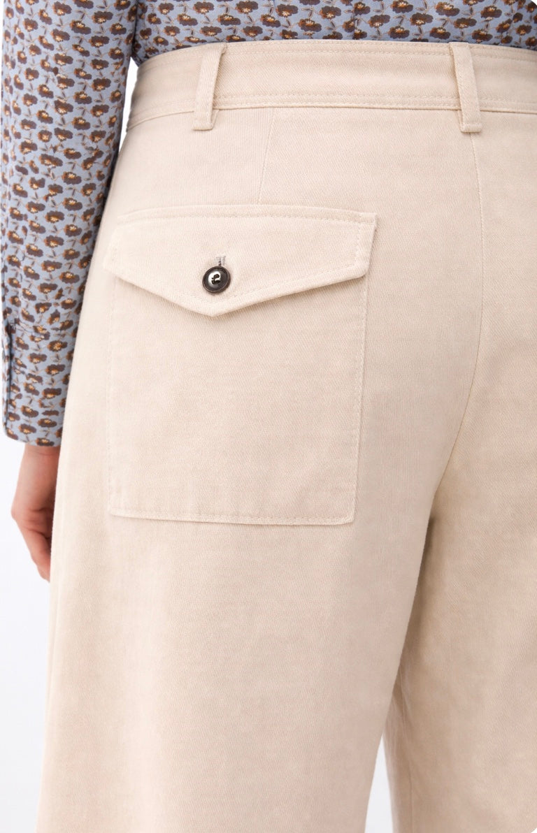 The IBlues Pausa Trousers in Ivory offer modern versatility with a relaxed wide-leg silhouette and short length that flatters every frame. Style them with trainers for laid-back weekends or dress up with heels for evening occasions—this adaptable design works both ways. The neutral ivory tone coordinates effortlessly across your entire wardrobe, pairing beautifully with minimalist basics or eye-catching pieces. Practical flap buttoned rear pockets provide functional storage, whilst the comfortable fit ensures all-day wearability. A contemporary essential for building a flexible, seasonless capsule wardrobe.