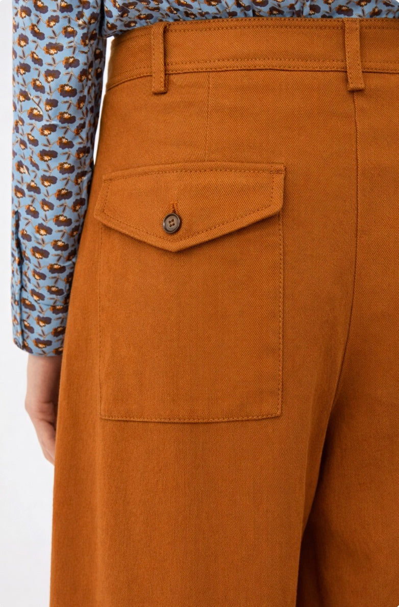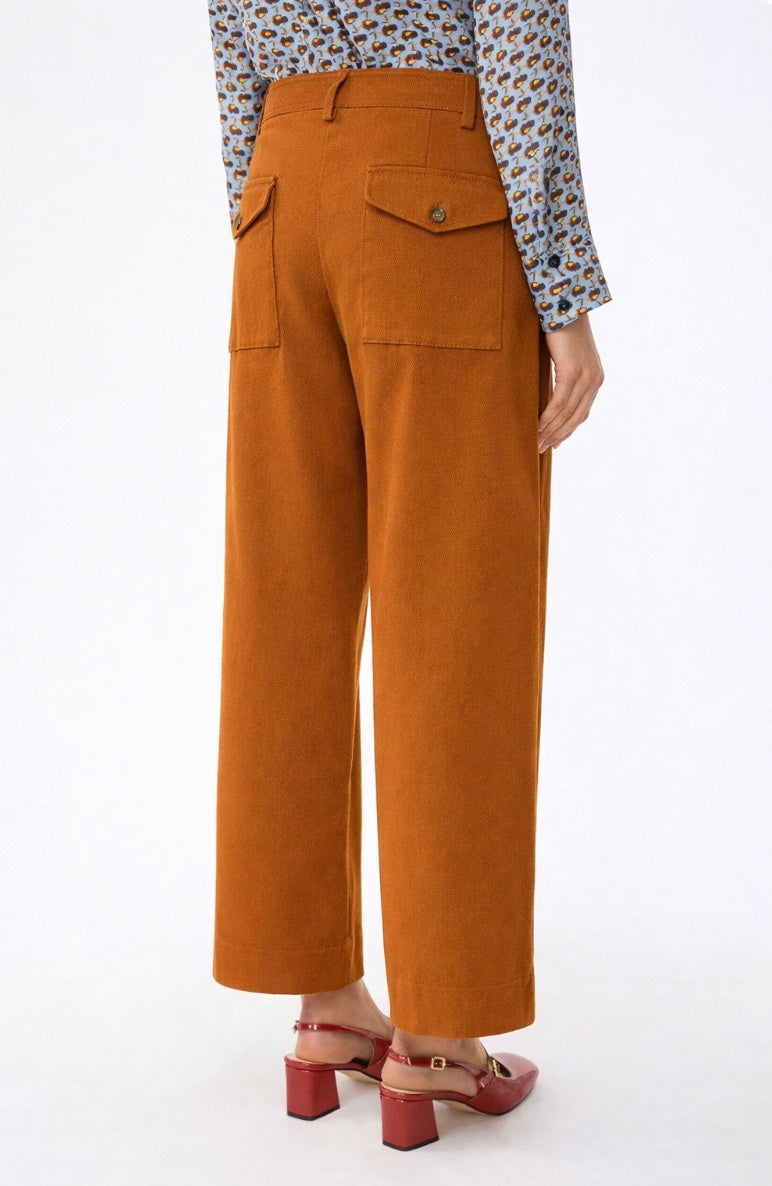 Master versatile styling with the Pausa Trousers in Tobacco Brown from IBlues. Designed with a generous wide-leg cut and short length, these trousers deliver a flattering silhouette that transitions effortlessly between casual and formal settings. The rich tobacco colour complements both neutral palettes and vibrant accents, making it a go-to piece for any occasion. Functional flap buttoned pockets provide secure storage, while the relaxed fit ensures all-day comfort. A timeless wardrobe staple that combines contemporary design with practical comfort.