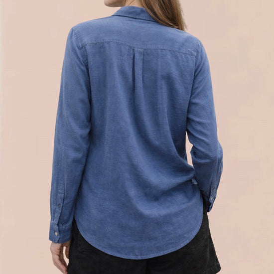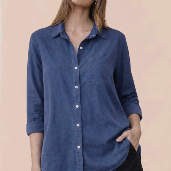 Discover effortless style with the Pocket Shirt in Midnight Surf, a washed navy essential from Bella Dahl. Constructed from 100% pure linen, this long-sleeve shirt delivers breathable comfort and natural texture ideal for any season. The single chest pocket and flattering V-neck silhouette create a polished look, while the shaped hem ensures a refined fit. The sophisticated midnight surf tone works beautifully with neutral basics, layered pieces, or worn open over summer styles. Perfect for casual weekends, smart-casual settings, or holiday getaways. Versatile, comfortable, and timelessly elegant.