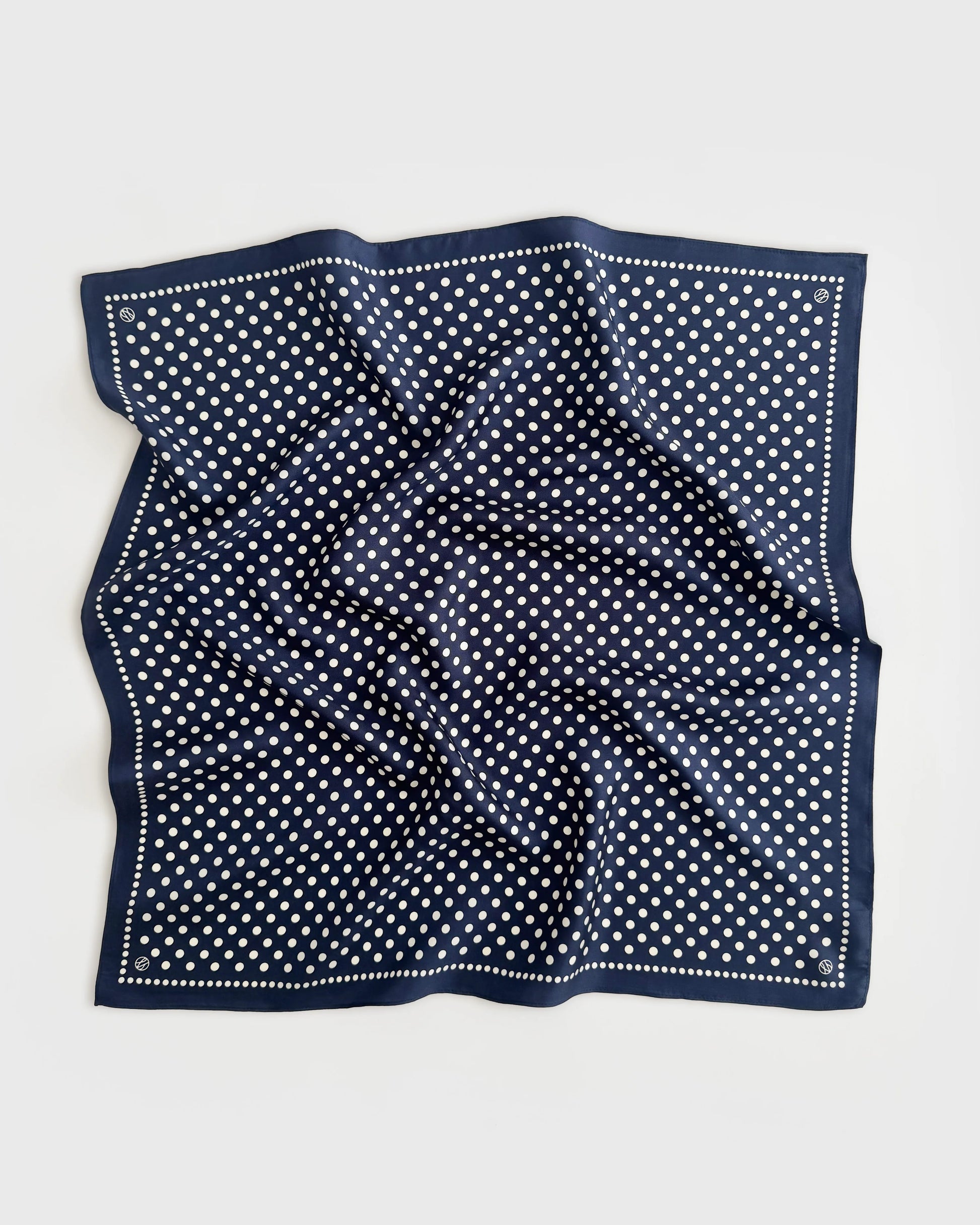 The Polkadot Scarf Navy 65 from Lescarf is a timeless accessory that combines playful charm with effortless sophistication. Crafted from 100% premium silk, this luxurious scarf features a deep navy blue base adorned with classic ivory polkadots, framed by a fine ivory border for a refined finish. Its clean and elegant design reflects Lescarf’s Scandinavian minimalism, offering a polished touch to any look.