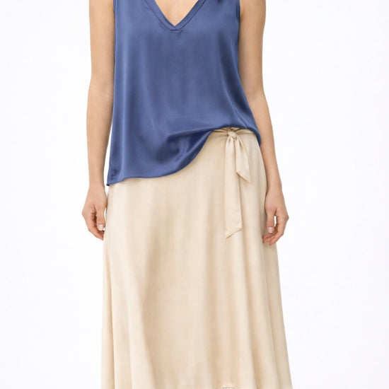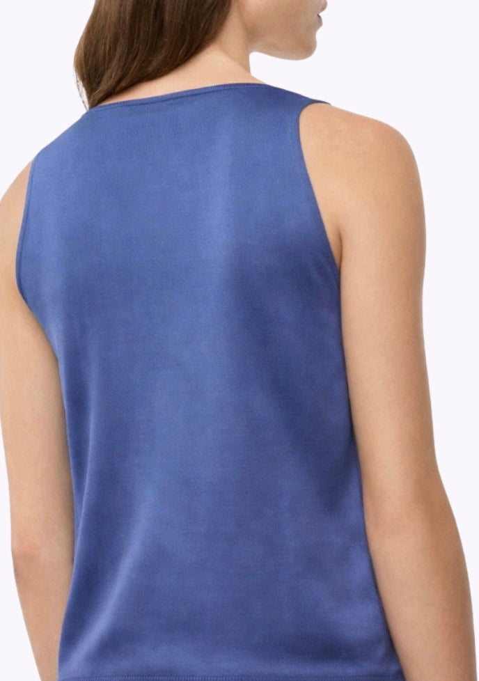 Elevate your wardrobe with the Quaglia Top in Avio Blue from the gorgeous IBlues, a sophisticated sleeveless tank designed for effortless elegance. This V-neck piece drapes beautifully and moves with you throughout the day. The fluid fabric creates a refined silhouette perfect for layering or wearing solo. Ideal for both casual outings and dressier occasions, this versatile top pairs seamlessly with jeans, trousers, or skirts. Experience comfort meets style with this timeless essential that transitions from day to evening wear.