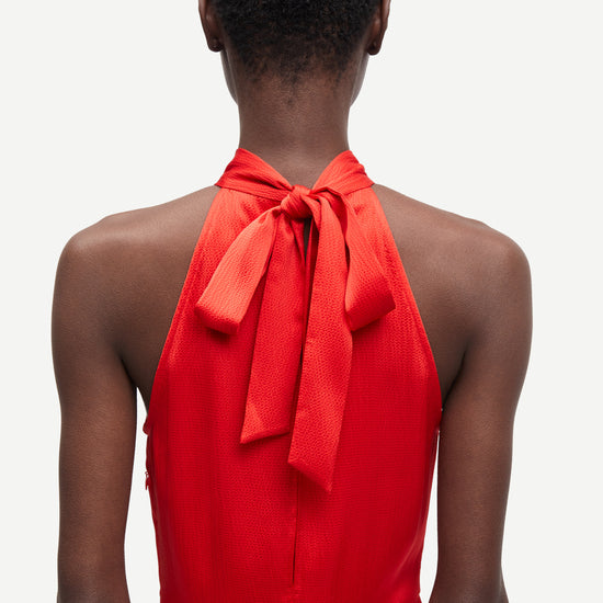 Make an entrance in the Rheo Dress Flame Scarlet from Samsøe Samsøe, a statement piece designed to turn heads. Rendered in Flame Scarlet, a vibrant, luminous red, this show-stopping dress is crafted from luxurious hammered satin that catches the light beautifully for a fluid, high-impact finish.