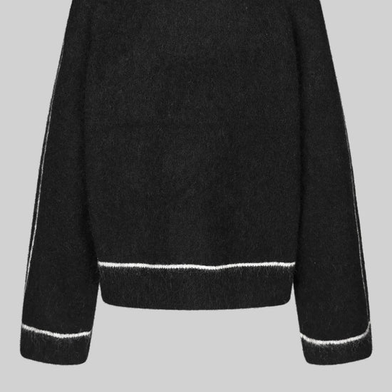 Elevate your knitwear collection with the Rosemarie Knit O-Neck Black from Second Female. Featuring a flattering round neck, long sleeves and contrast stripes throughout which gives it a unique flair and a bit of structure. Cut in a stretchy mohair wool blend with ribbing on the cuffs, hem and neck, you'll be looking on trend and feeling fabulous. Wear yours with black denim and boots for chic style.