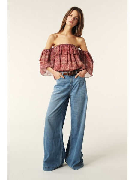 Soft, feminine, and effortlessly romantic, the Rush Top in Rose by ba&sh captures the essence of carefree summer style. Designed with an off-the-shoulder silhouette and an elasticated neckline, it features detached sleeves that add a playful, bohemian twist.
