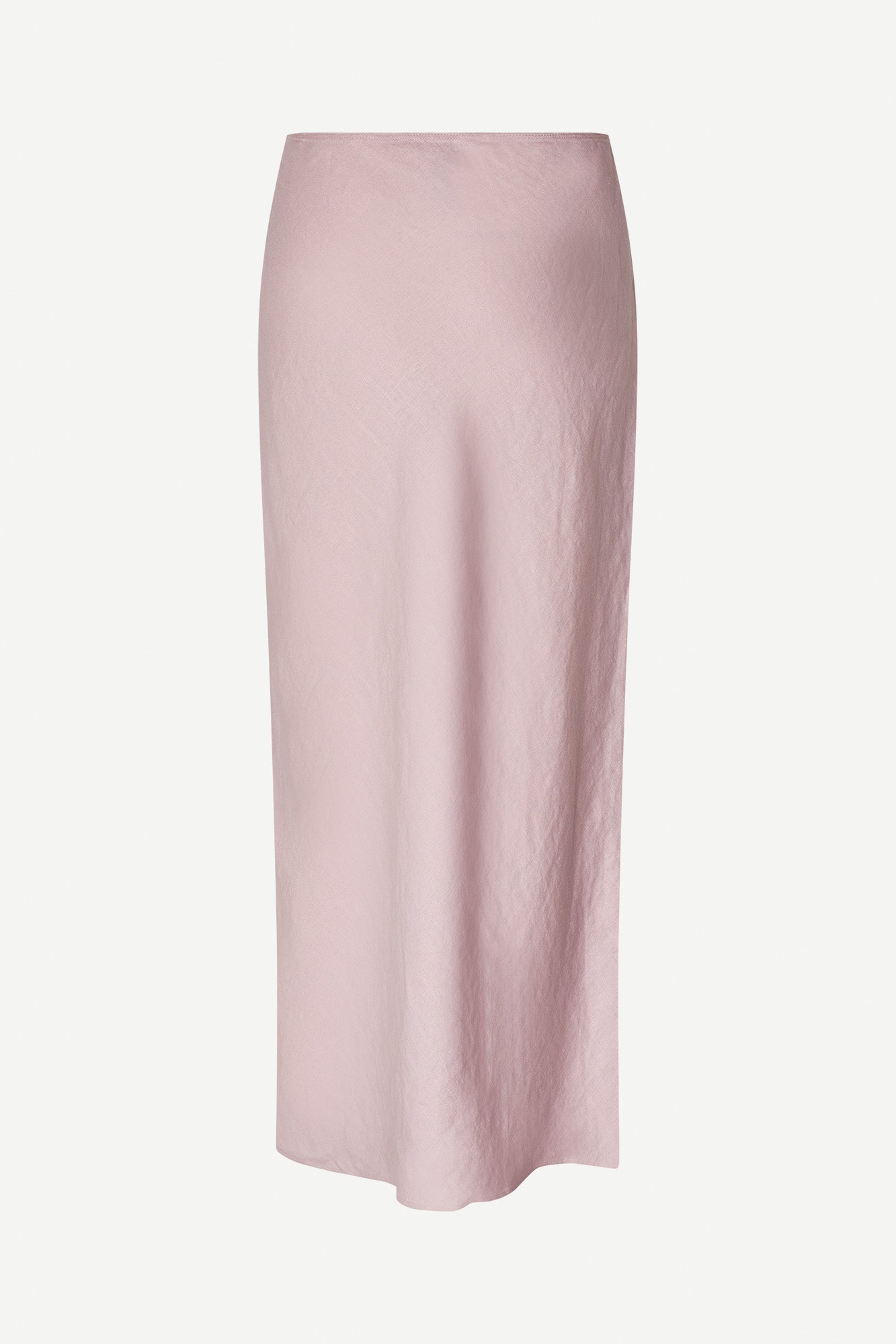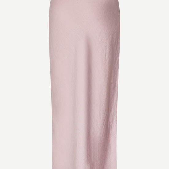 The Saagneta Long Skirt Violet Ice from Scandinavian brand Samsoe Samsoe is a beautifully cut slip skirt designed for ease and elegance. Made from recycled polyester, this mid-length skirt features a soft, fluid drape and a gentle sheen that adds a touch of luxe to everyday styling. The flattering silhouette skims the hips before falling effortlessly to the hem, while the pale violet hue offers a fresh, feminine update to a classic shape. Perfect for both casual and occasion dressing, wear yours with a simple knit and sandals by day, or dress it up with a silk blouse and heels for an elevated evening look.