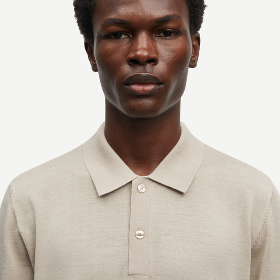 Understated, refined, and effortlessly versatile - the Sarowan Knit Polo in Pure Cashmere, a light beige hue, is a key piece for a well-curated wardrobe. Made from a premium blend of extrafine Merino wool and recycled polyester, this short-sleeved knitted polo offers lightweight comfort, natural breathability, and sustainable style.