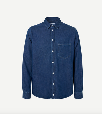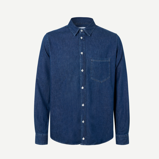 Cut in a regular fit, it features a full button front, buttoned cuffs, a patch chest pocket, and a structured neck yoke seam - all the essential details for a timeless denim shirt. The washed blue tone brings an easy, lived-in appeal, making it a reliable piece you’ll reach for again and again.
