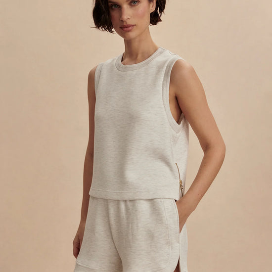In a soft Ivory Marl hue that complements everything in your wardrobe, the Shea Tank pairs beautifully with high-waisted leggings, relaxed joggers, or tailored shorts for a clean, put-together look - whether you're heading to brunch, running errands, or unwinding at home.