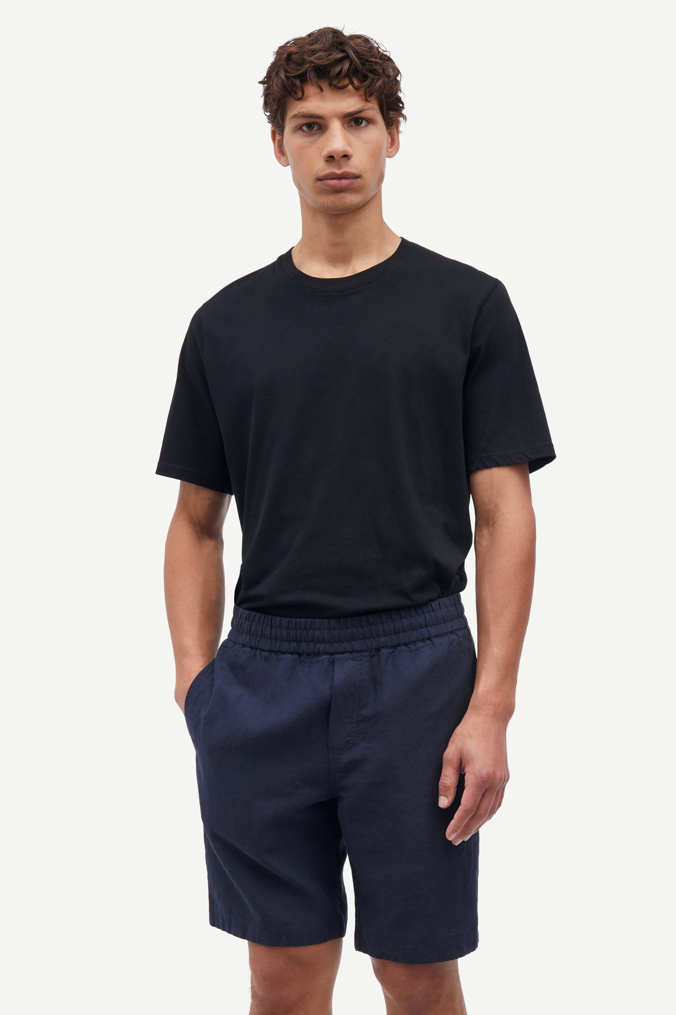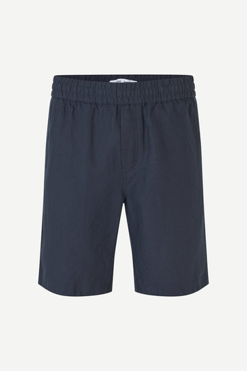 The elasticated waistband and drawstring closure ensure a secure, adjustable fit, while side seam pockets and a zipped back welt pocket add functional storage without compromising style. Finished in a deep navy hue, these shorts strike the right balance between laid-back and polished - perfect for off-duty days, weekend plans, or casual evenings out.