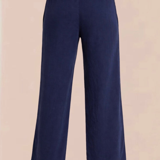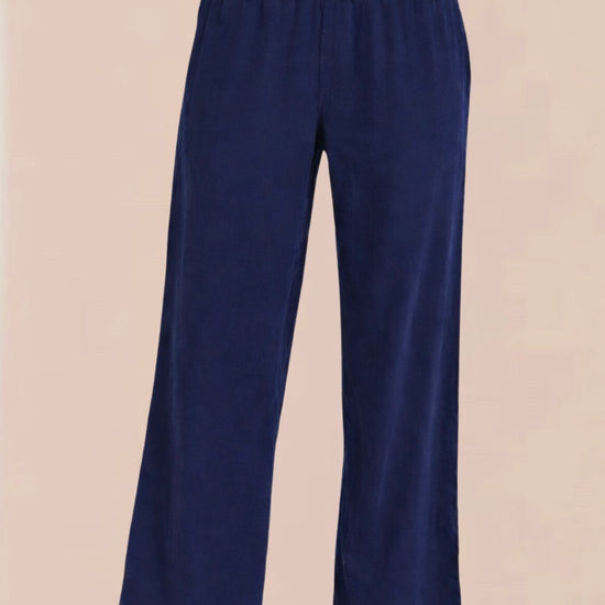 Discover the Smocked Waist Trousers in Midnight Surf by Bella Dahl—a versatile essential crafted from breathable TENCEL™ Lyocell. Featuring a comfortable smocked waistband, relaxed wide-leg silhouette, and functional side pockets, these lightweight trousers transition seamlessly from casual daywear to evening occasions. The airy fabric and stretchy design ensure all-day comfort, making them ideal for warm weather and holiday travel. Style with trainers for relaxed elegance or elevate with heels for a polished finish. A summer wardrobe must-have that combines effortless style with sustainable fabric innovation.