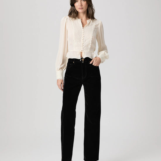 Meet your new go-to trouser for the season — the Paige Stevie in Onyx Rich Velvet. Combining timeless design with a touch of luxurious texture, these jeans are crafted from sumptuously soft stretch velvet for a rich, elevated look that’s perfect from day to night.