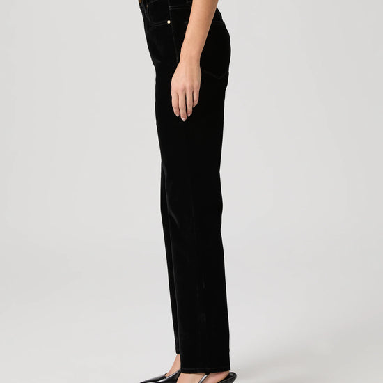 Designed with a flattering high-rise waist and a straight-leg silhouette, the Stevie offers a sleek, elongated shape that’s as comfortable as it is chic. The deep onyx black hue enhances its versatility, making it an ideal choice for both smart and casual styling.