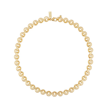 Simplistic elegance best describes the Stockholm Chain Necklace Gold from Talis Chains. Featuring a disc link chain with a secure lobster fastening, this 18k gold plating on brass necklace has a longer more relaxed length making it ideal for the everyday. Wear yours with a choker style necklace and a longer pendant for a glamorous stack.