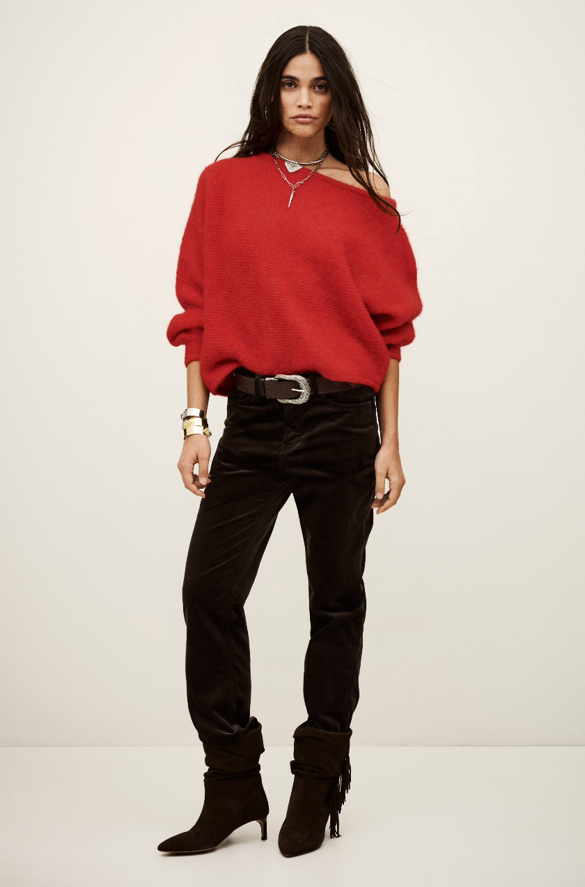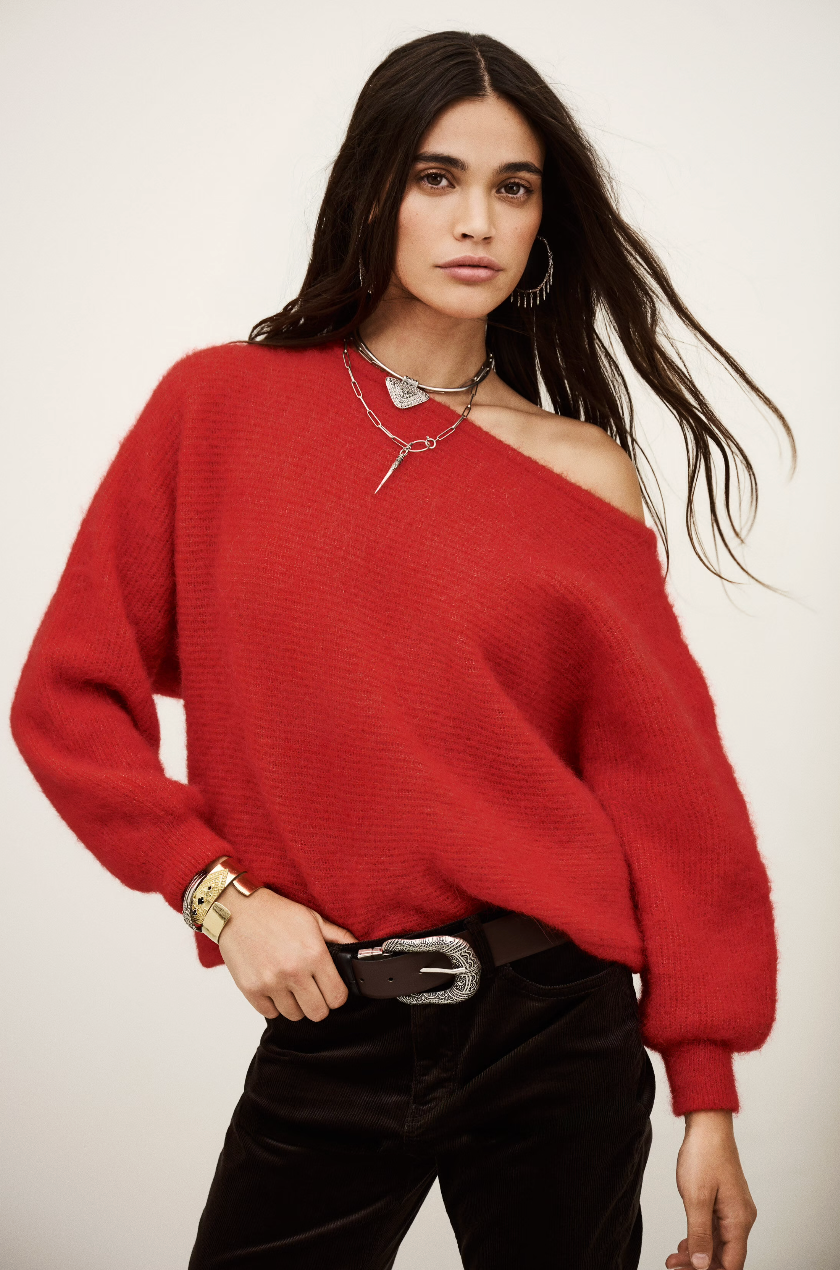 The Suela Jumper in Red by ba&sh is a statement knit that brings effortless allure and bold colour to your wardrobe. Made from a super soft alpaca blend, it features a knitted open weave that feels light yet cozy - perfect for transitional layering.