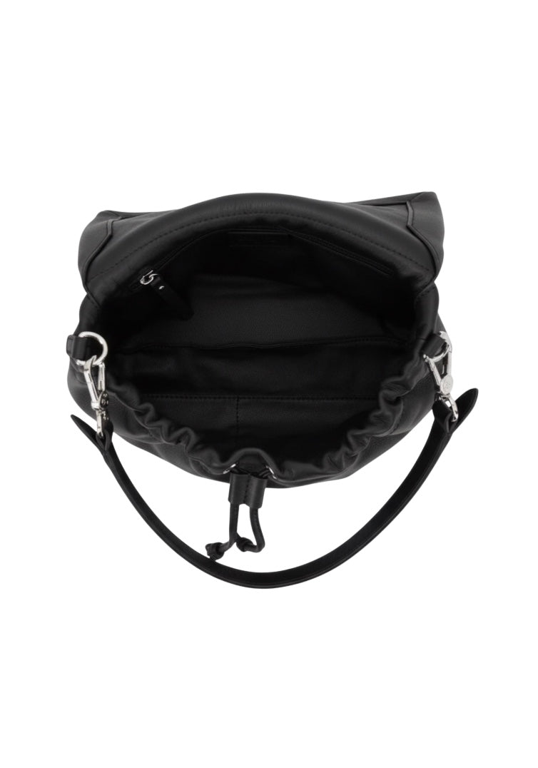 Under the structured flap, a lace-up drawstring closure allows the bag to soften and drape naturally, creating a subtly relaxed, slouchy feel. Finished with sleek silver hardware and a structured top handle, the Temi Dalia Bag delivers a modern, polished look that transitions effortlessly from day to evening.