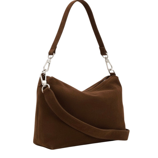 The Temi Suede Bag Large Wood from Abro is a beautifully refined everyday bag, crafted from gorgeously soft chocolate cocoa suede for a rich, luxurious finish. Designed in a larger, more relaxed silhouette, this style offers effortless elegance while remaining highly practical for daily wear.