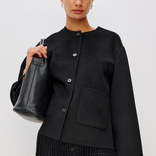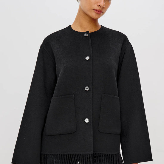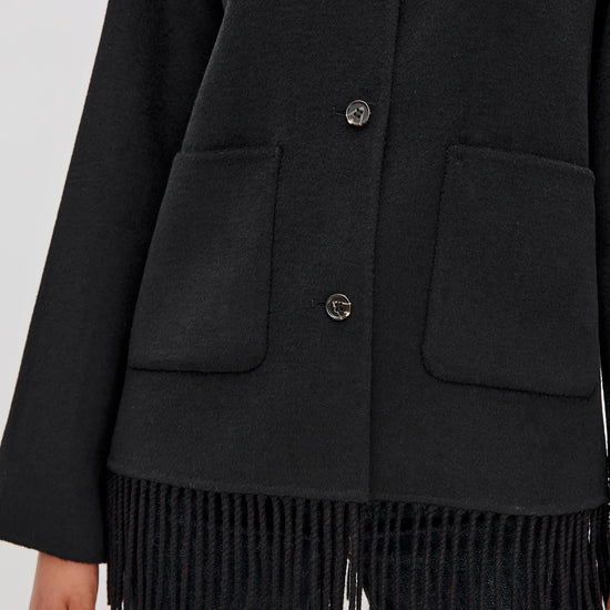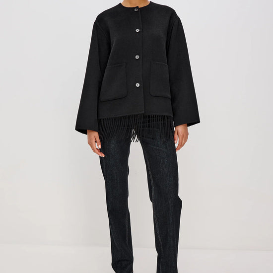 Front button closures and patch pockets add functional detail, while the fringe trim at the hem introduces a touch of playful movement and personality. Both polished and relaxed, the Tomoko Coat transitions seamlessly from day to night - wear yours with tailored trousers for an elevated city look or over denim and boots for a chic off-duty outfit.