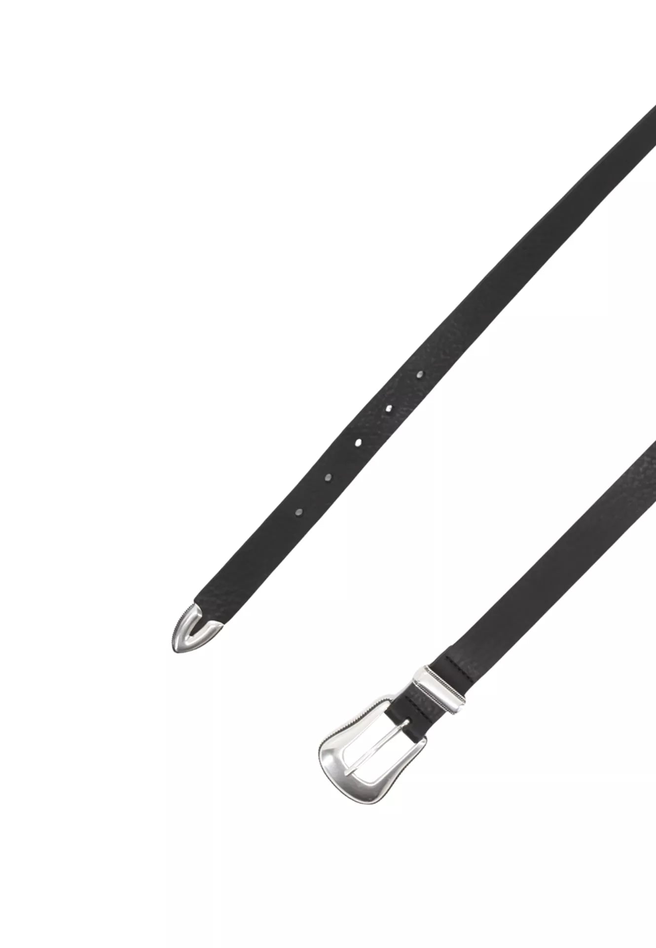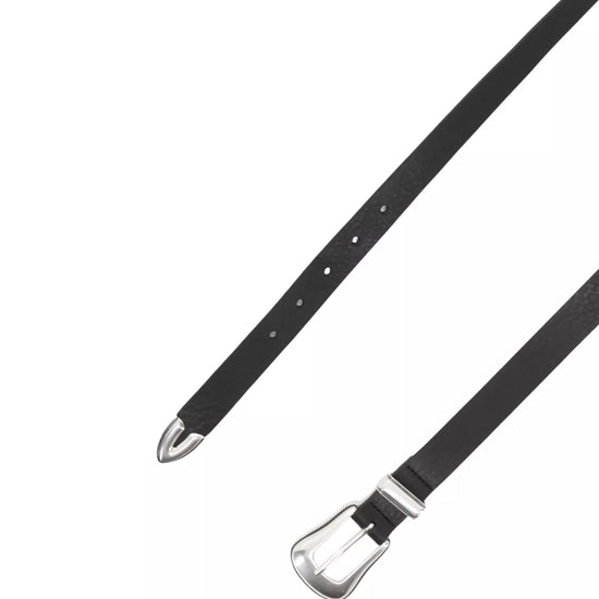 Add a chic western-inspired edge to your wardrobe with the Vacchetta Belt in Black/Nickel Narrow from Abro - a sleek, slimline version of the classic rodeo belt. Crafted from buttery soft black leather, this timeless accessory is finished with a bold nickel buckle and matching tip, giving it a modern, polished feel.